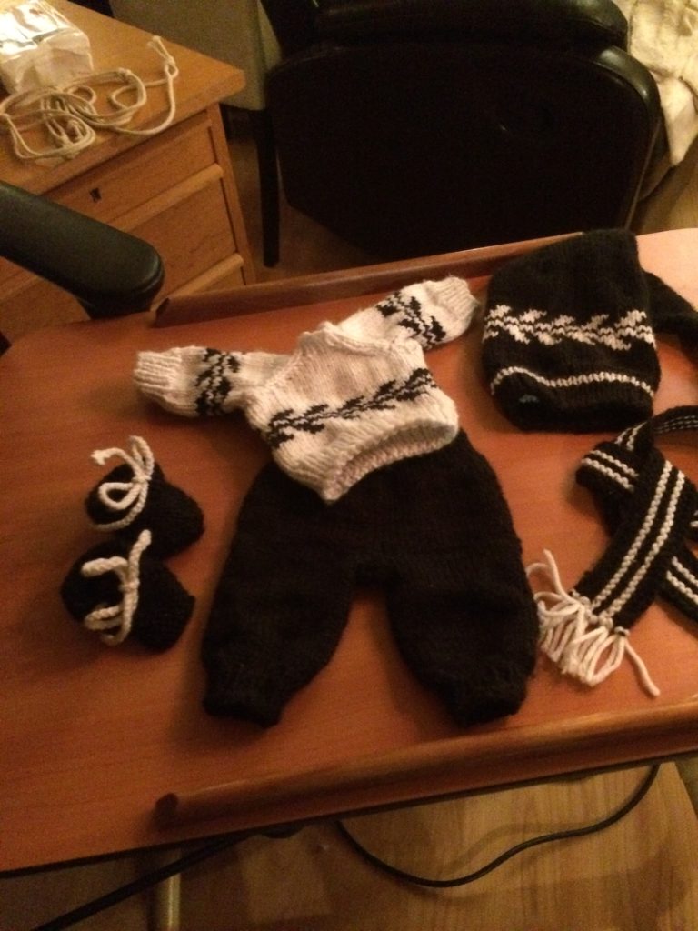 My fingers are still going strong somehow. I guess it is because it is fun. Now this little one is getting an outfit to go skiing or sledding. I guess I have to make a sledd for her. That have to wait for some time until my health is a little bit better so I can get myself outside into the outbilding where I have my woodworking area.